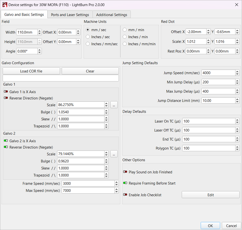 The current types & manufacturers of galvo laser sources supported (as of LightBurn 1.2.00) are as follows:
