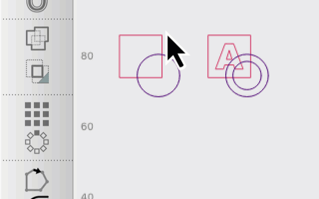 Use the Boolean tools to combine existing shapes (or Grouped shapes) into new or more complex shapes. There are three Boolean options, along with one very similar option, Weld.