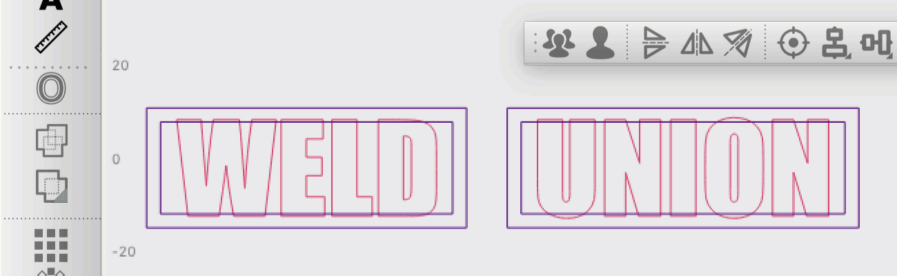 Weld works similarly to Boolean Union, but instead of being limited to combining only two shapes or two Groups of shapes, you can use Weld with any number of objects.