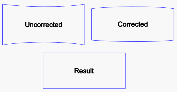 Galvo lasers project the laser from a single point above your object. When marking a cylindrical object, the increased travel distance for the laser as the surface of the object curves away causes the shape to widen and bend, similarly to the uncorrected rectangle in the diagram below.