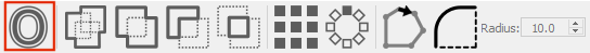 The Offset Shapes tool creates a new shape by outlining the objects in your selection at a distance you specify, either inward, outward, or in both directions at once.